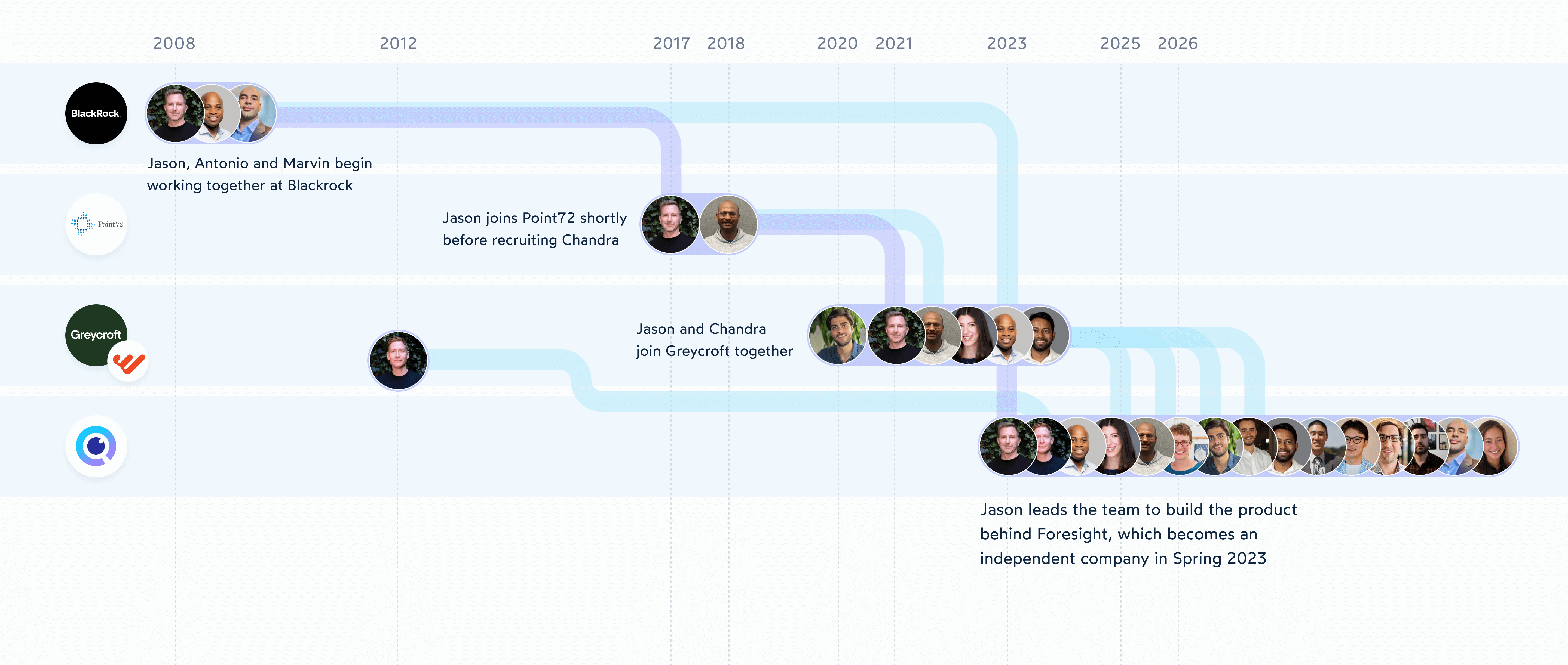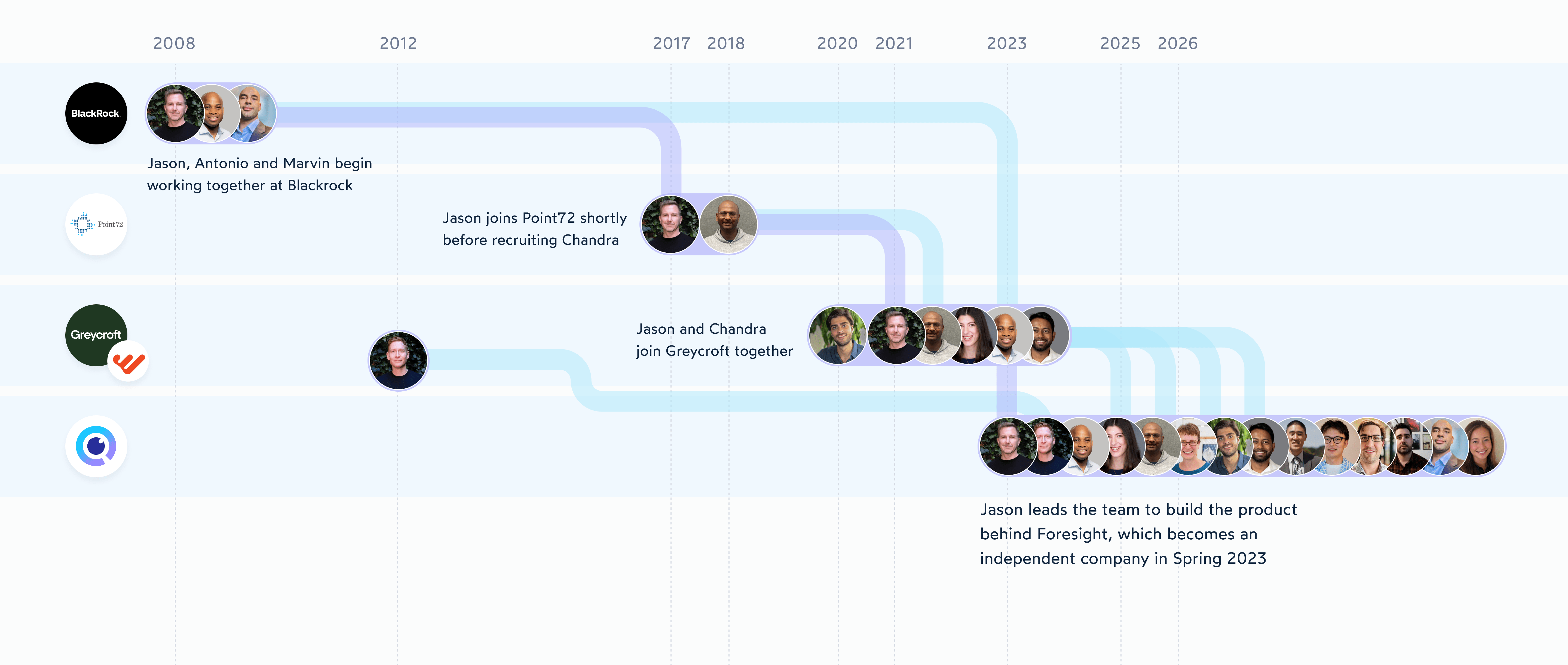 The founding product team has worked together at three of the leading private market investment firms in NYC and bring their combined experience, expertise and vision to Foresight.